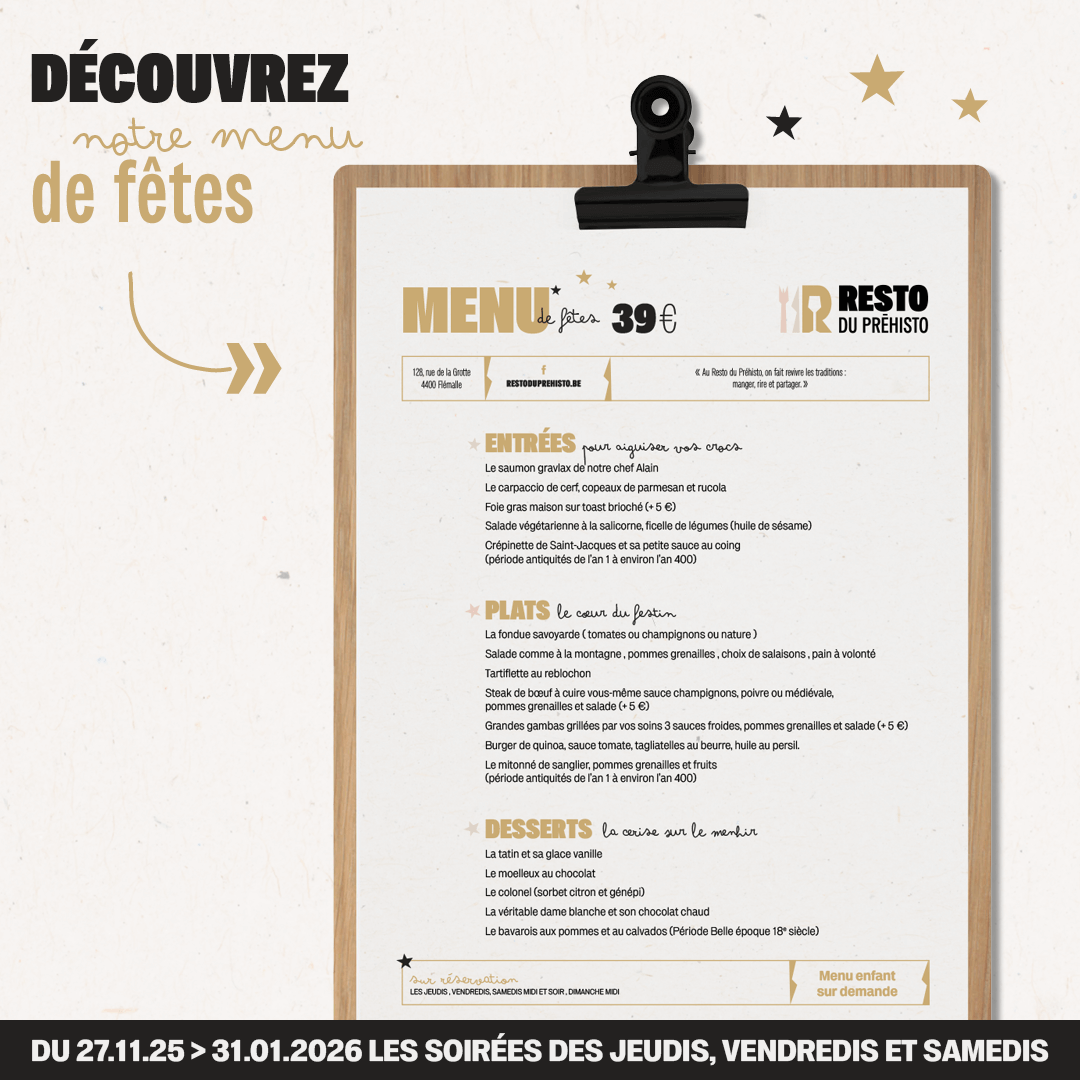Le Resto du Préhisto est bien plus qu’un restaurant : c’est une expérience culinaire et humaine ancrée dans un lieu unique, au cœur du Préhistomuseum de Ramioul. Dans un cadre naturel d’exception, notre équipe vous invite à découvrir une cuisine durable et pleine de caractère, où chaque plat met à l’honneur les produits du terroir et les savoir-faire de la région.